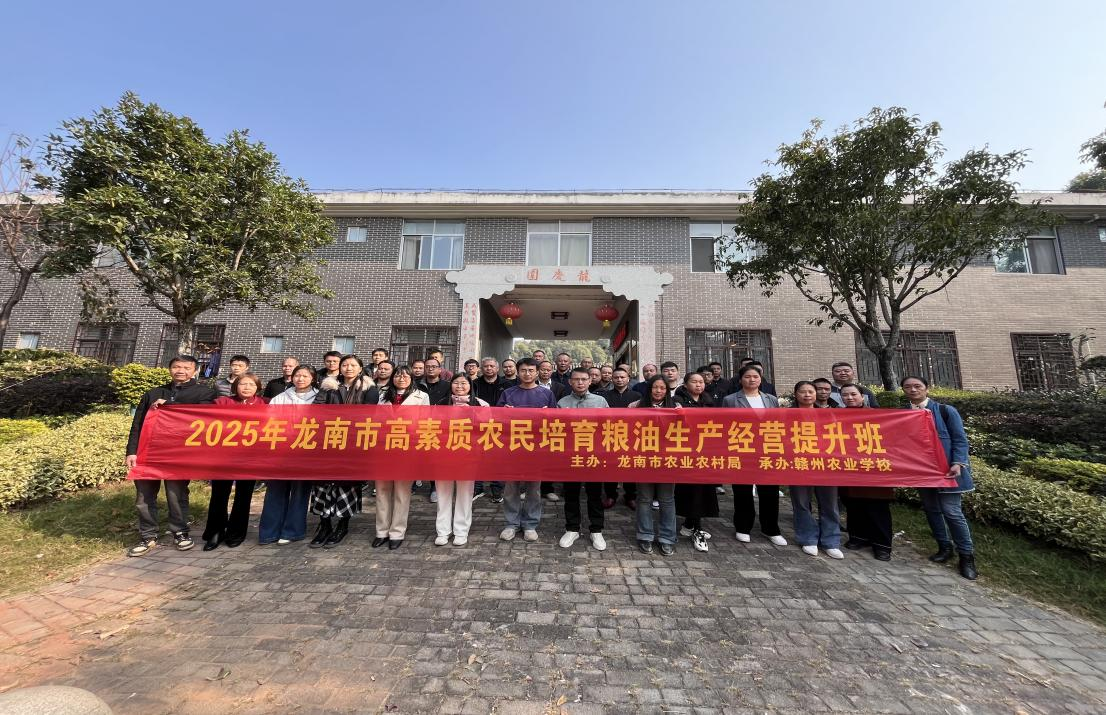 近日,我校承办的2025年龙南市高素质农民培育粮油生产经营提升班圆满完成。在为期六天的集中培训期间,来自龙南市的粮油种植与经营从业者齐聚一堂,系统学习了粮油生产经营相关技术课程。本次培训紧密对接粮油产业发展实际需求,并将持续为参训学员提供后续技术指导与资源对接服务,切实推动培训成果转化为现实生产力。
