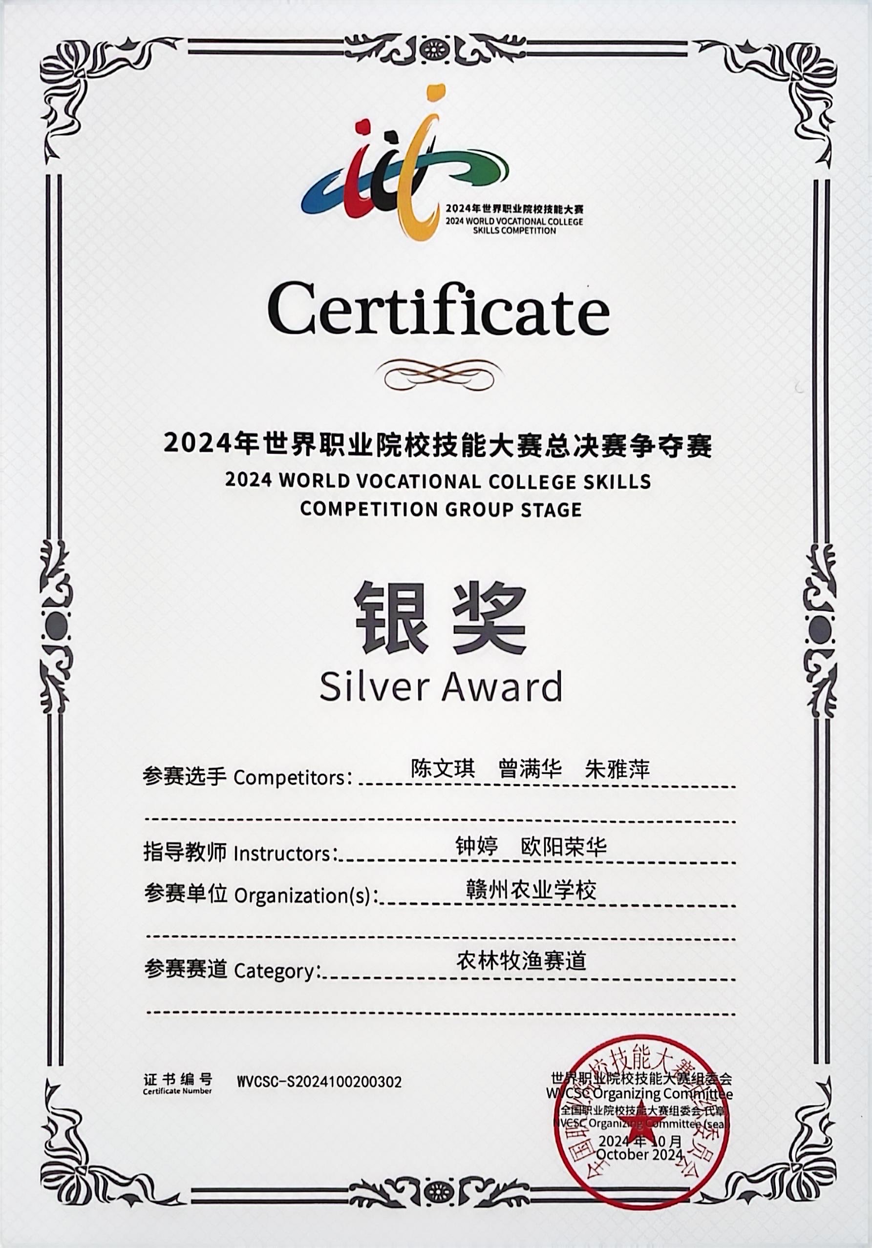 2024年世界职业院校技能大赛总决赛争夺赛农林牧渔赛道·银奖